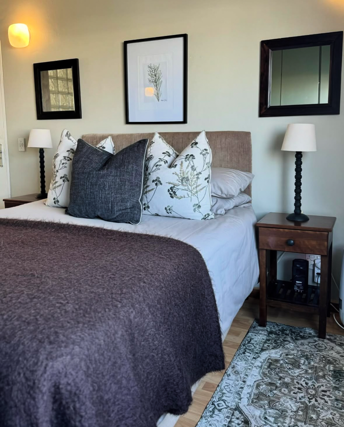 Melkhoudt is a charming one-bedroom escape nestled on the lush side of the property. With warm sunlight and within view of a milkwood tree outside, soft natural light fills the space and wraps you in a feeling of home. The melkhoudt tree is known as a protector tree. Guests here enjoy direct access to our shared garden and tranquil pool area—perfect for a morning dip or quiet reading session under the trees. It’s fully equipped for self-catering, with a complete kitchen, private bathroom, Wi-Fi, and dedicated parking. A perfect blend of comfort and calm, just moments from Big Bay’s inviting beachfront.
